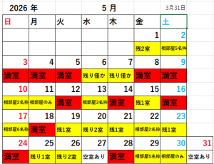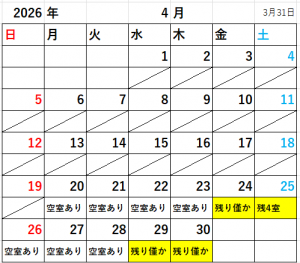 2026年の予約受付中!空室情報(3月31日時点)